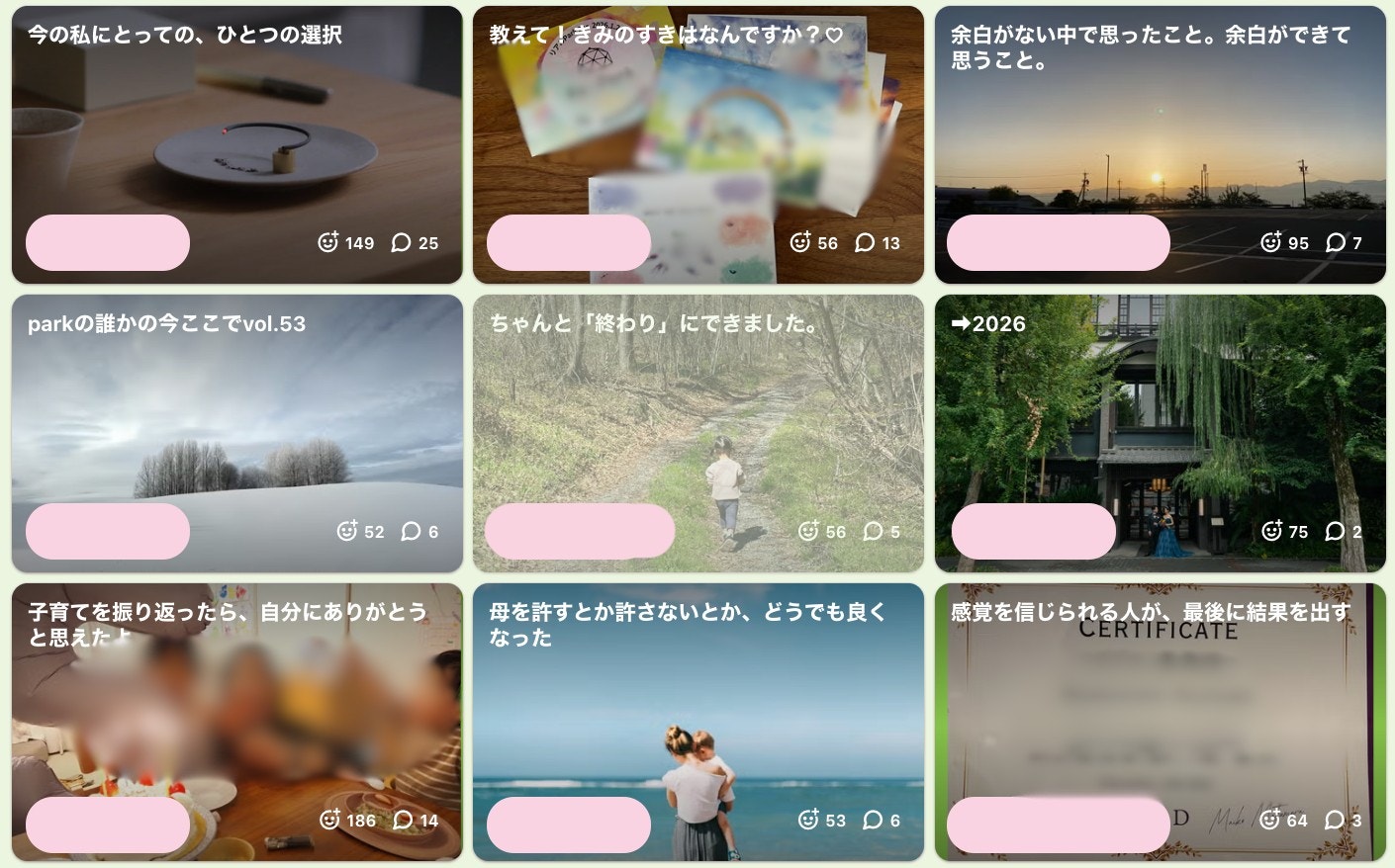当日のあたたかい空気感は、オンラインのコミュニティ内にも波及し、それぞれの想いやPark全体の熱量をより深めるきっかけとなっています🌱✨