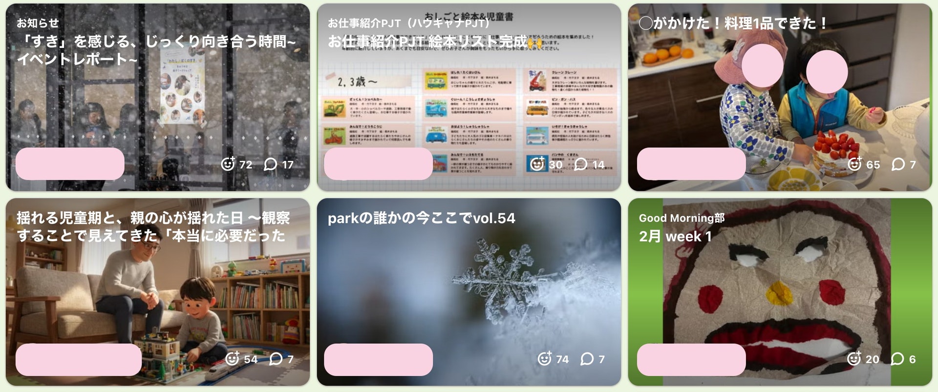 子育てと直接関係が無くても、お悩み相談、知識や趣味の共有、雑談しながらご自愛タイム、などメンバーの興味関心から多彩なイベントが開催されています!